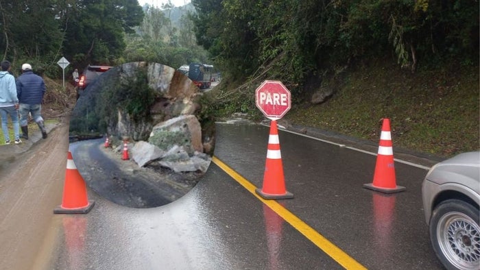 Cortesía X - @PerimetralOB Cierran la vía Bogotá-Choachí por caída de piedras.