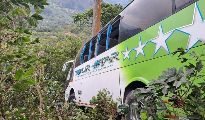 Por el momento, la vía funciona a un solo carril mientras las autoridades realizan las respectivas labores para sacar el bus del abismo.