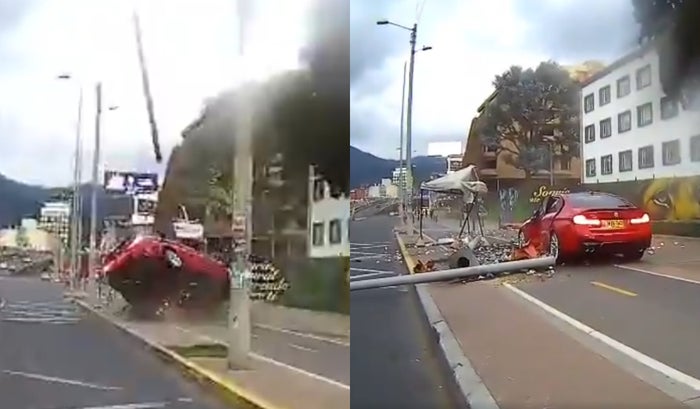 Bogotá se sacudió nuevamente por un accidente en una de sus vías más transitadas. Sobre las 5:30 de la tarde del sábado, un vehículo BMW color rojo perdió el control en la intersección de la calle 100 con carrera 19, en el norte de la capital, impactando contra un poste de alumbrado público.