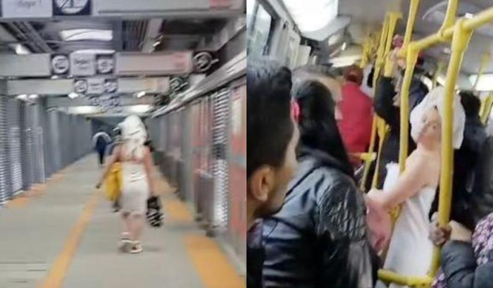 [Video] Mujer sorprendió a usuarios de TransMilenio en toalla: es viral en redes