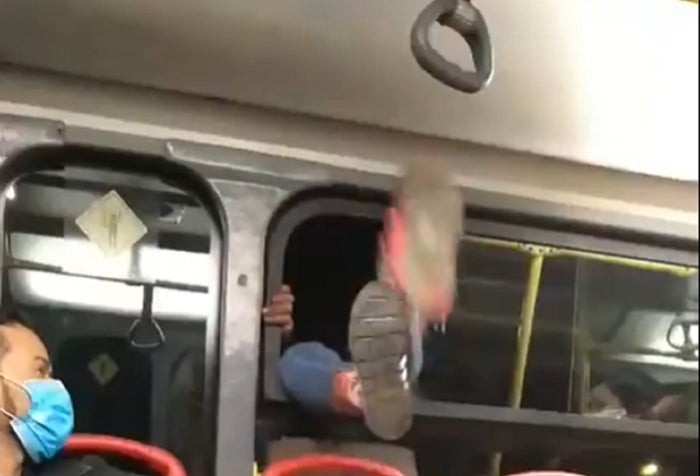 Una usuaria de Transmilenio publicó en su cuenta de Twitter un video en el que se ve cómo una mujer abandona el bus de la forma más inusual posible: por la ventana.