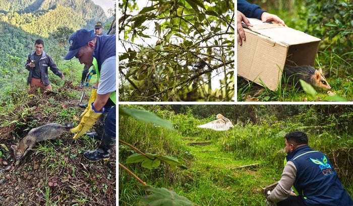 La primera actividad se realizó en el municipio de La Vega, en un territorio de bosque montano tropical, donde fueron liberados 10 ejemplares: un jaguarundí o gato moro, tres zorros cangrejeros y seis zarigüeyas.